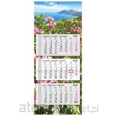 KALENDARZ TRÓJDZIELNY 2026 WYMIAR CAŁKOWITY KALENDARZA: 32 x 85,5cm GŁÓWKA KALENDARZA: Zdjęcie uszlachetniane folią błysk, z efektem wypukłości. KALENDARIUM: wym. 28,5 x 14 cm, trójjęzyczne (PL, GB, D), z numeracją tygodni i imieninami jest przytrzymywane przez kartonowe wypustki, które zapobiegają jego odstawaniu od plecków kalendarza. WYKOŃCZENIE: kartonowa zawieszka, pasek z czerwonym przesuwanym okienkiem, miejsce na notatki. WYMIAR ZDJĘCIA 32 x 22 cm ZDJĘCIE Z EFEKTEM WYPUKŁOŚCI: uszlachetnione folią błysk.