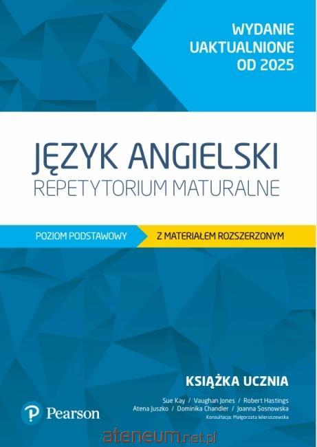 Szkoły średnie[Wydanie jednotomowe - poziom podstawowy z materiałem rozszerzonym]Autorzy książki ucznia: S. Kay, V. Jones, R. Hasting, A. Juszko, D. Chandler, J. Sosnowska, M. WieruszewskaNumer dopuszczenia MENMateriał edukacyjny (nie wymaga dopuszczenia)O kursieZmiana podstawy programowej i egzaminu maturalnego, która obowiązuje od 2025 roku, nakłada potrzebę starannej selekcji treści utrwalanych w klasie maturalnej. Dlatego przedstawiamy:Najbardziej aktualne repetytoria na rynku!Uaktualnione Repetytorium maturalne uwzględnia wszystkie zmiany wprowadzone w wymaganiach egzaminacyjnych obowiązujących już od 2025 roku. Usunęliśmy słowa z aspektów leksykalnych, które zostały wykreślone z podstawy programowej. Zaktualizowaliśmy część gramatyczną, usuwając z niej zagadnienia, które nie są już wymagane na egzaminie. Zaktualizowaliśmy listę form wypowiedzi pisemnej. Dostosowaliśmy poziom leksyki i gramatyki, tak, aby odzwierciedlał wymagania egzaminacyjne obniżone o pół stopnia w skali CEFR.Najpełniejsze podejście do utrwalania środków językowychCzy wiesz, że Znajomość środków językowych to część egzaminu, w której uczniowie średnio połowę zadań rozwiązują błędnie? (na podstawie analizy egzaminu na poziomie rozszerzonym opublikowanego przez CKE w 2024 roku). Uaktualnione Repetytorium maturalne to kompleksowe podejście do utrwalania znajomości środków językowych jeszcze więcej zadań do pogłębionej praktyki.Dotychczas chwalone przez maturzystów rozwiązania to m.in.: ćwiczenia, treningi i zadania maturalne wszystkich typów wskazanych w Informatorze, kompletne listy słownictwa z podziałem na poziom podstawowy i rozszerzony, dla wygody pogrupowane wg aspektów leksykalnych z podstawy programowej, część gramatyczna z wyjaśnieniami gramatyki w języku polskim oraz towarzyszącymi im dodatkowymi ćwiczeniami i zadaniami maturalnymi, dodatkowe zasoby dostępne w zintegrowanym podręczniku cyfrowym, rozszerzające treści z książki papierowej.W wydaniu uaktualnionym zwiększamy nacisk na znajomość środków językowych poprzez: NOWOŚĆ! dodatkowe zadania na środki językowe w sekcjach Matura Booster w każdym rozdziale książki, NOWOŚĆ! wyraźnie oznaczone zadania na środki językowe w sekcji Słownictwo w każdym rozdziale,