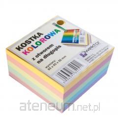 Kostka klejona kolorowa PASTELOWA, wymiar 85x85 370 kartek. Wykorzystywana do notatek i zapisków. Również do origami. Może służyć jako samodzielny bloczek lub wkład do pojemnika. Doskonały do biura, szkoły lub domu.