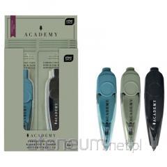 Korektor w taśmie, szerokość 5 mm, długość 15 metrów. Ergonomiczny kształt obudowy dopasowany do dłoni. Wysokiej jakości taśma korekcyjna odporna na zerwanie z idealnie przylegającą do powierzchni papieru warstwą korygującą, po której można pisać bezpośrednio po zastosowaniu. Do użytku na większości rodzajów papieru. Przezroczysta obudowa pozwala śledzić pozostałą ilość taśmy korygującej. Estetycznie zapakowany w twardy blister. Obrotowa końcówka pozwala używać go w dwóch płaszczyznach.