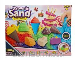 - w zestawie: pachnący piasek puszysty w czterech kolorach, 6 plastikowych foremek, 1 zabawkowa łyżka i 1 mata;
