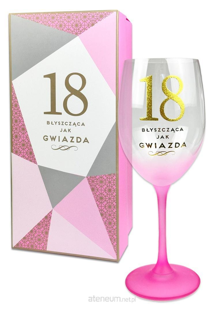 Urodzinowy kieliszek z okazji osiemnastych urodzin zapakowany w estetyczne , kolorowe pudełko.