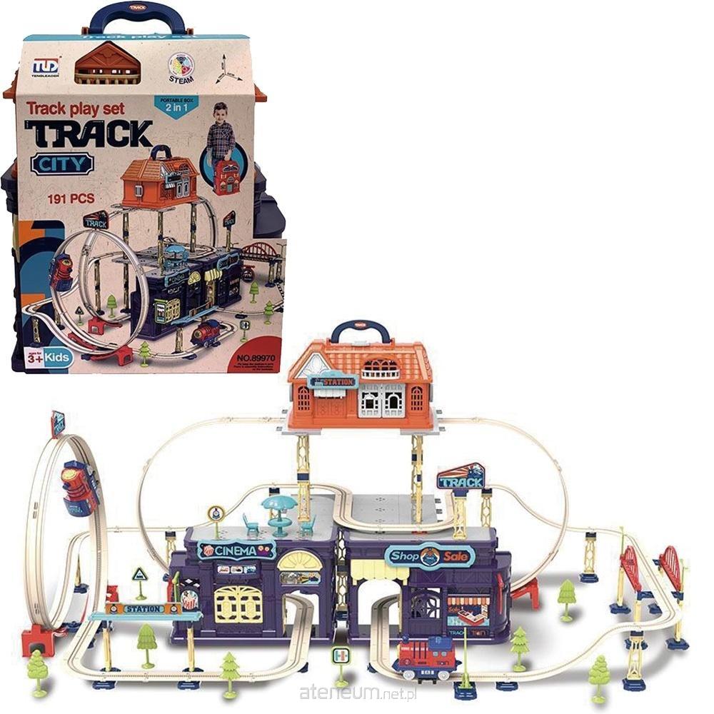Po rozłożeniu zestaw zajmuje imponującą przestrzeń 100 x 52 x 45 cm, co daje możliwość tworzenia różnorodnych układów torów i zabudowy miasta. Kolorowe elementy, realistyczne naklejki i detale sprawiają, że zabawa jest jeszcze bardziej wciągająca i pozwala tworzyć unikalne scenerie. Całość wzbogacają efekty dźwiękowe - kolejka wydaje realistyczne trąbienie ciuchci a podczas jazdy po szynach słychać charakterystyczne odgłosy. W komplecie znajdują się zarówno tory, kolejka, jak i elementy otoczenia - budynki, mosty czy dekoracje i drzewa, które wspólnie tworzą pełen uroku świat małego miasteczka. To świetna propozycja dla dzieci, które uwielbiają konstruować. Całość zamknięta jest w praktycznej skrzynce, która mieści zestaw i jednocześnie staje się częścią infrastruktury. Dzięki łatwemu demontażowi torów i obrazkowej instrukcji składanie miasteczka jest niezwykle proste.