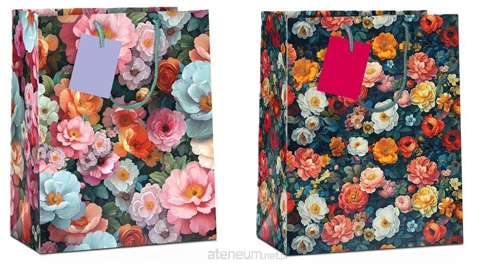 Torebka z brokatem Kwiaty 18x23x8cm mix ROZETTE