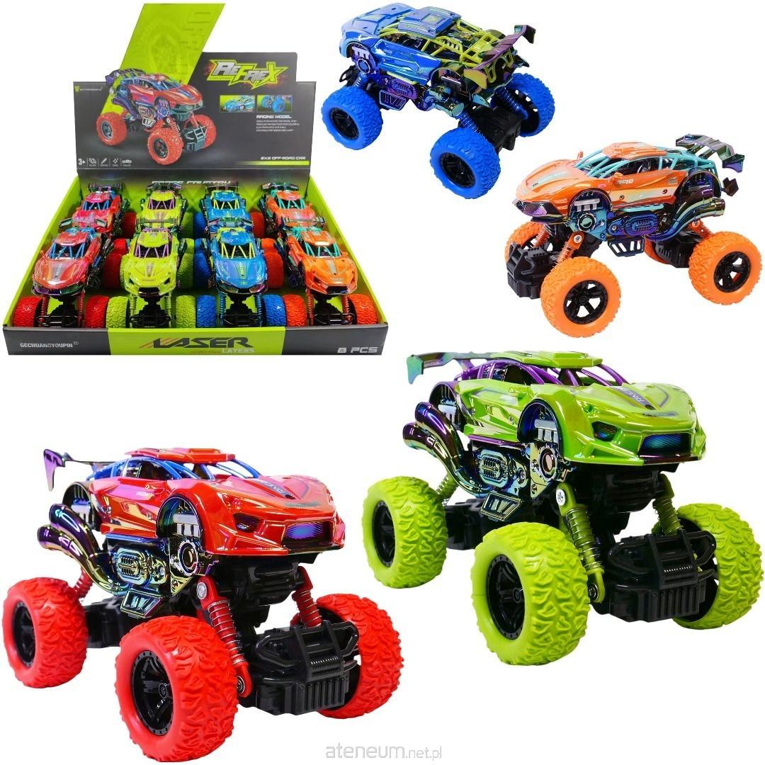 Samochód Monster Truck "LASER - OFF-ROAD KING" - Zestaw Terenowych Potworów Przygotuj się na ekstremalne wyzwania z jednym z naszych samochodów Monster Truck "LASER - OFF-ROAD KING"! Te potężne pojazdy z gigantycznymi kołami i sprężynowym zawieszeniem to idealna propozycja dla małych miłośników terenowych przygód i dynamicznej zabawy. Dostępne w czterech rzucających się w oczy kolorach, zapewnią mnóstwo ekscytujących wrażeń. Agresywny Design i Niezwykłe Kolory: Zestaw prezentuje cztery różne, kolorowe warianty Monster Trucków: czerwony, niebieski, pomarańczowy i limonkowo-zielony. Każdy samochód posiada agresywny, futurystyczny design z metalicznymi akcentami i wyraźnymi grafikami, które podkreślają ich dziki charakter. Co wyróżnia te modele, to ich nadzwyczajnie duże, bieżnikowane koła w intensywnych barwach (czerwone, niebieskie, pomarańczowe, jaskrawozielone), które zapewniają doskonałą przyczepność i zdolność do pokonywania przeszkód. Sprężynowe Zawieszenie dla Ekstremalnej Zabawy: Największą atrakcją tych Monster Trucków jest ich ruchome, sprężynowe zawieszenie. Dzięki niemu samochody mogą swobodnie "skakać", amortyzować uderzenia i pokonywać nierówności terenu, co symuluje realistyczną jazdę off-road. To gwarantuje dynamiczną i pełną akcji zabawę. Rozwój Kreatywności i Aktywnej Zabawy: Zabawa Monster Truckami to doskonały sposób na: Rozwijanie wyobraźni: Tworzenie własnych torów przeszkód, wyścigów i scenariuszy terenowych. Wspieranie zdolności manualnych: Manewrowanie pojazdami i eksplorowanie ich możliwości. Pobudzanie zainteresowania motoryzacją i mechaniką. Zachęcanie do aktywnej zabawy zarówno w domu, jak i na zewnątrz. Solidna Konstrukcja: Wykonane z trwałego tworzywa sztucznego, pojazdy są solidne i odporne na intensywną zabawę, co gwarantuje długie godziny radości z pokonywania wszelkich "przeszkód". Specyfikacje (dla pojedynczego Monster Trucka): Wymiary Pojedynczego Samochodu (orientacyjne): o Długość: około 18 cm o Szerokość: około 10 - 11 cm o Wysokość: około 10 - 12 cm (wraz z kołami) Wymiary Kół (średnica): około 5 - 6 cm Kolory w Zestawie: Czerwony, Niebieski, Pomarańczowy, Limonkowo-zielony