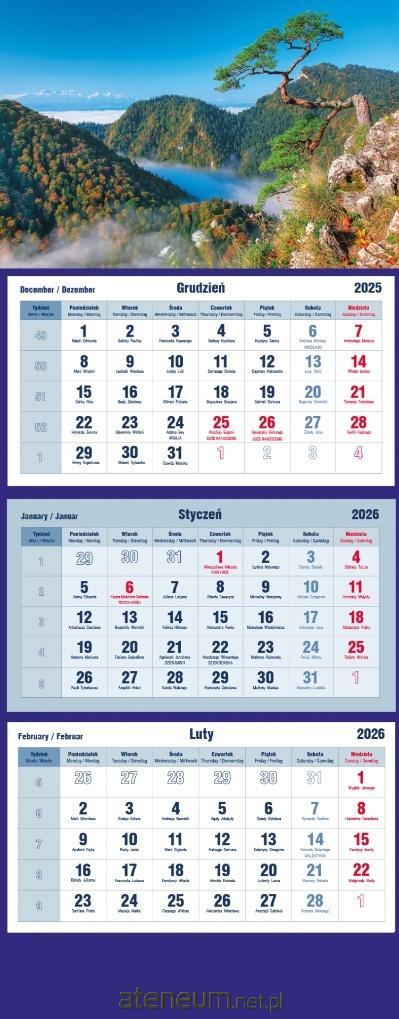 Główka pełnokolorowa, okienko przesuwane, nazwy miesięcy i tygodni w wersjach językowych, miejsce na nadruk reklamowy.