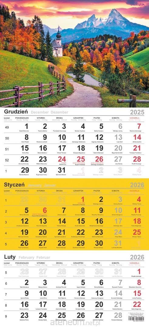 Główka pełnokolorowa, okienko przesuwane, nazwy miesięcy i tygodni w wersjach językowych.