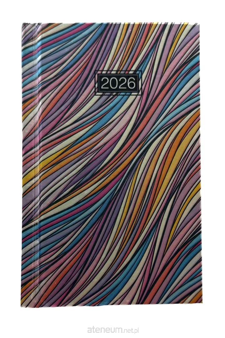 blok: 80x130 mm, 128 stron, papier 64g/m2 czarny, druk 2 kolory, blok kalendarza szyty nićmi, tasiemka, kieszonka na tylnej wklejce
