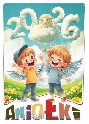 Kalendarz ścienny w układzie miesięcznym. Poszczególne miesiące zilustrowane są rysunkami, których bohaterami są sympatyczne aniołki. Czytelne kalendarium pozwala zaznaczyć planowane wydarzenia.