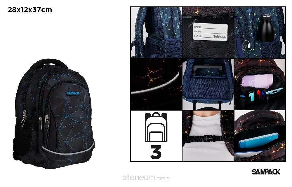 Plecak czarny geometryczny trzykomorowy 28x12x37cm