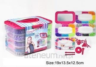 Kuferek 4 poziomy z lusterkiem, koraliki x1400, literki, wisiorki metalowe, stojaczek na bransoletki, 19x12x13,5 cm