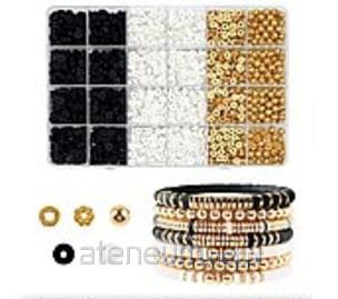 zestaw do robienia bransoletek, koraliki czarne, białe, złote, aplikacje, sznurki; Box