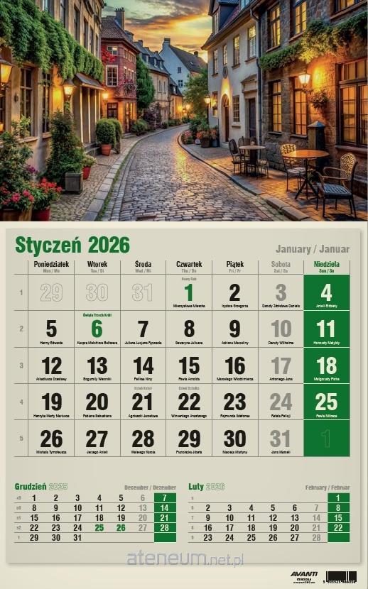 Kalendarz 2026 trójdzielny płaska główka Młyny