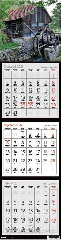 Kalendarz 2026 trójdzielny wąski płaski mix