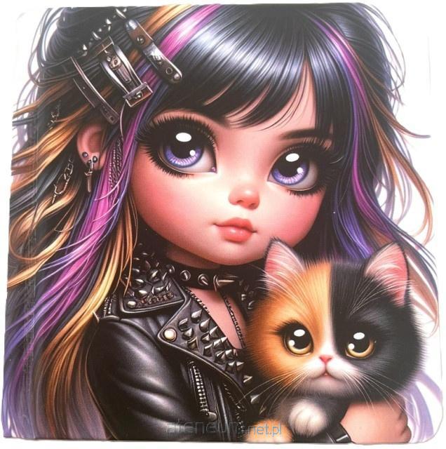Notatnik ozdobny 100x100 N9806 Dziewczynka z kotem 48 stron gładki TW