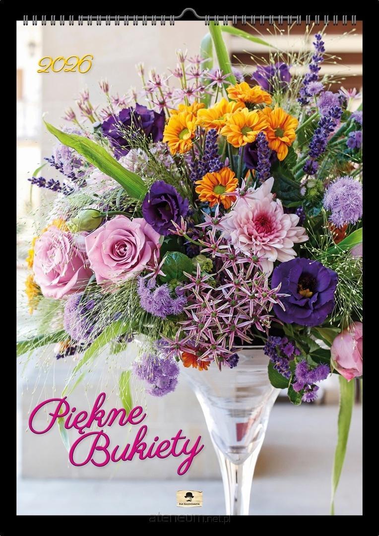KALENDARZ 2026 A2 ŚCIENNY JEDNOSTRONNY 12 KART + 2 OKŁADKI, PAPIER KREDOWY, OPRAWA Z ZAWIESZKĄ, ,DUŻE CZYTELNE KALENDARIA W JĘZYKU PL,EN,DE,UA. Tematyka kwiaty, bukiety, glamour.