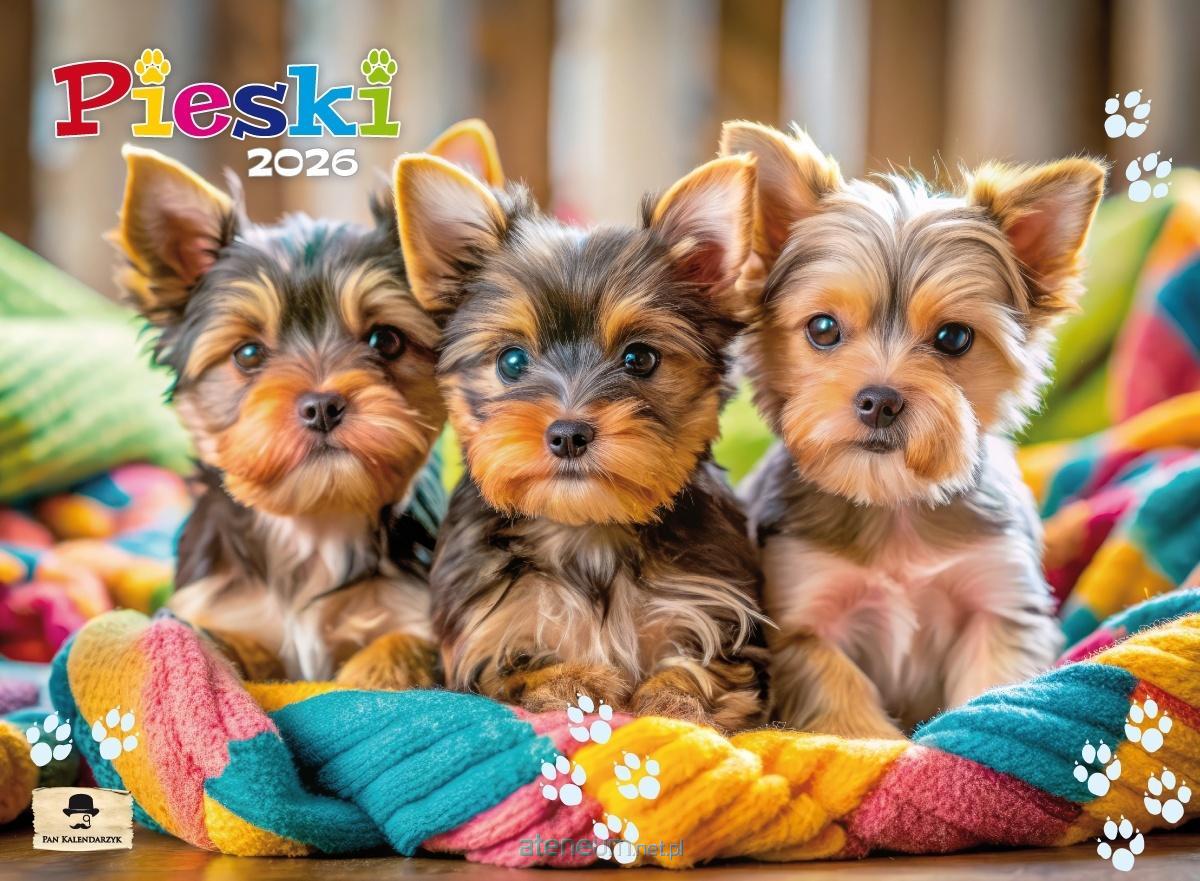 Kalendarz 2026 ścienny ALBUMOWY drukowany dwustronnie. Format po rozłożeniu do powieszenia 320/470mm ( format złożony 320/235mm). 28 stron (13 rozkładówek). Oprawa zeszytowa z otworem, Duże czytelne kalendarium z miejscem na notatki, duża czytelna czcionka. Dodatkowo nazwy miesiąca i dni tygodnia w języku Ukraińskim, Angielskim i Niemieckim. Kalendarium zawiera imieniny, nazwy Świąt, czasy wschodów i zachodów Słońca, fazy Księżyca oraz znaki Zodiaku. DODATKOWO ZAWIERA NAZWY RASY PSÓW.