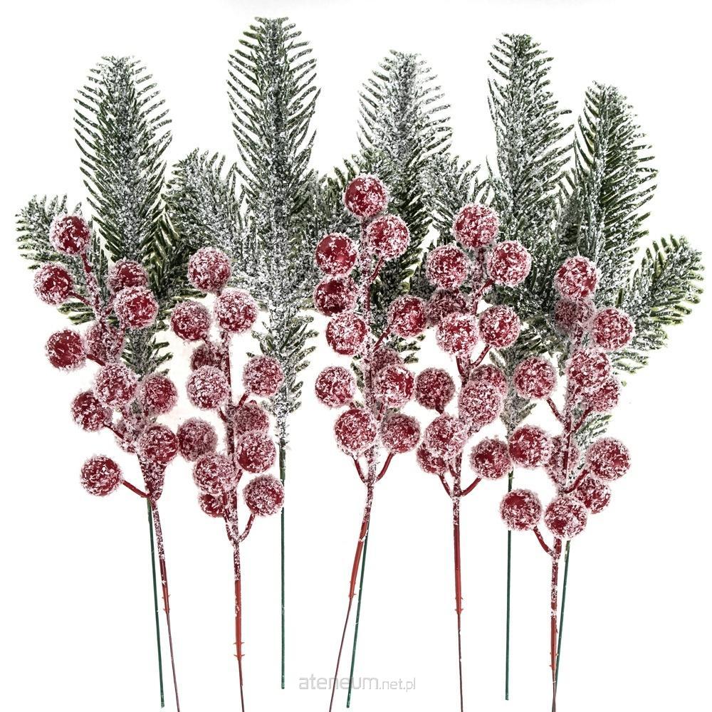 Szronione gałązki dekoracyjne z owocami 26cm 10szt