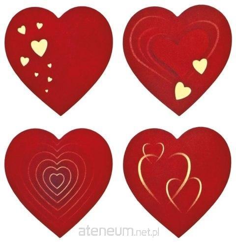 Naklejki papierowe na taśmie 4 wzory serca czerwone 25x25mm 500szt.