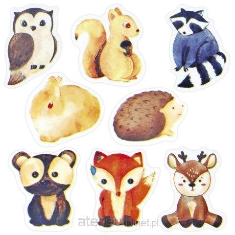 Naklejki papierowe na taśmie 8 wzorów mix rozmiarów zwierzęta leśne 500szt.