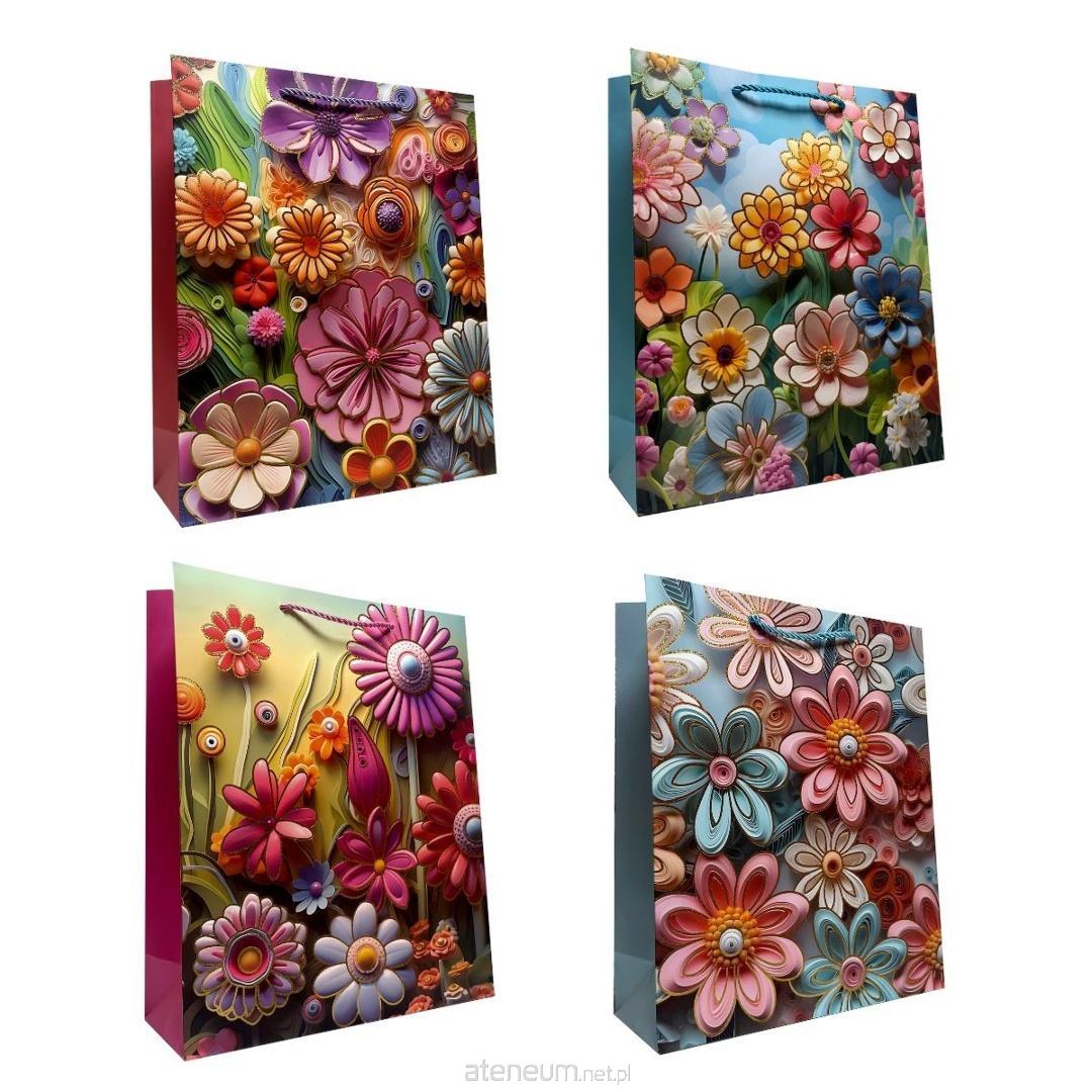 Torebka prezentowa uniwersalna S Kwiaty metal mix