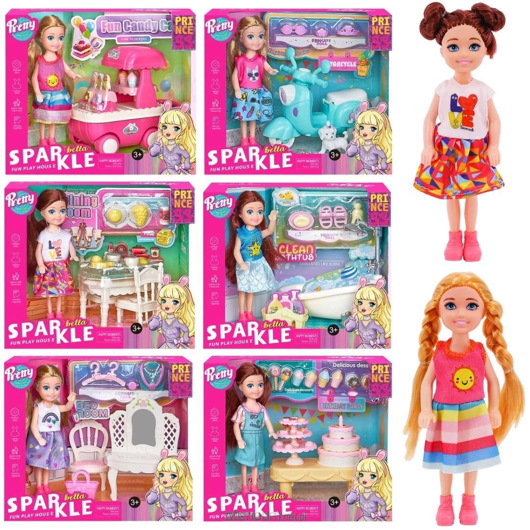 Krótki opis: Przenieś się do magicznego świata lalki Belli z kolekcją zestawów "Bella Sparkle"! Każdy zestaw to inna przygoda: słodkości, przejażdżki, domowe pomieszczenia czy urodzinowe przyjęcia. Idealne dla dzieci, które uwielbiają kreatywną zabawę w odgrywanie ról i marzą o własnym miniaturowym świecie.