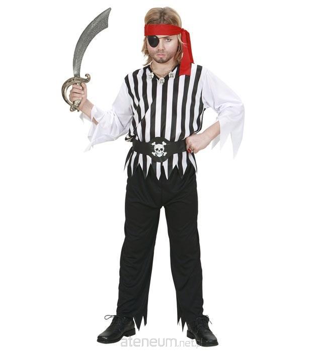 Strój pirata to idealna propozycja dla małych poszukiwaczy przygód, którzy marzą o podboju morskich fal! Zestaw zawiera czarno-białą koszulę w paski z postrzępionymi rękawami, które dodają autentycznego pirackiego charakteru. Do tego czarne spodnie z wygodną gumką i postrzępionymi nogawkami, które pozwalają na swobodę ruchów podczas pirackich zabaw. Czerwony, wiązany na głowie pasek oraz pasek z motywem trupiej czaszki, który wiąże się z tyłu, dopełniają całość, tworząc prawdziwie nieustraszony wygląd małego korsarza. Ten zestaw to strzał w dziesiątkę na bale przebierańców, tematyczne urodziny czy zabawy na świeżym powietrzu. Przygotuj się na mnóstwo morskich przygód! Zestaw nie zawiera szabli i opaski na oko. Rozmiar 128 - dla dzieci 5/7 lat Wymiary: Wzrost: 128 cm Obwód klatki piersiowej: 65-69 cm Obwód w pasie: 56-60 cm