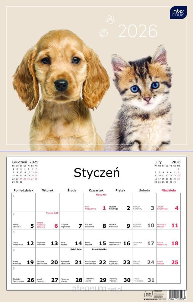 Kalendarz 2026 jednodzielny Pies