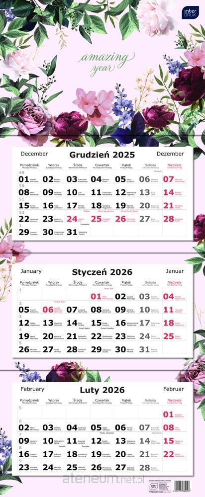 Kalendarz 2026 trójdzielny 82,5x34cm Kwiaty