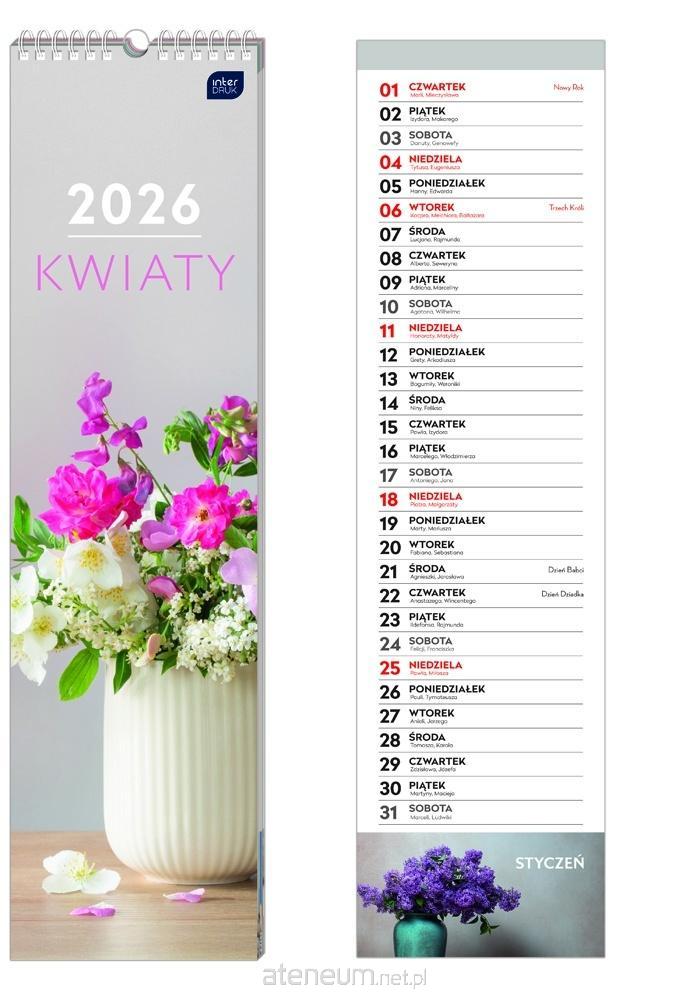 Kalendarz 2026 paskowy 13,5x50cm Kwiaty