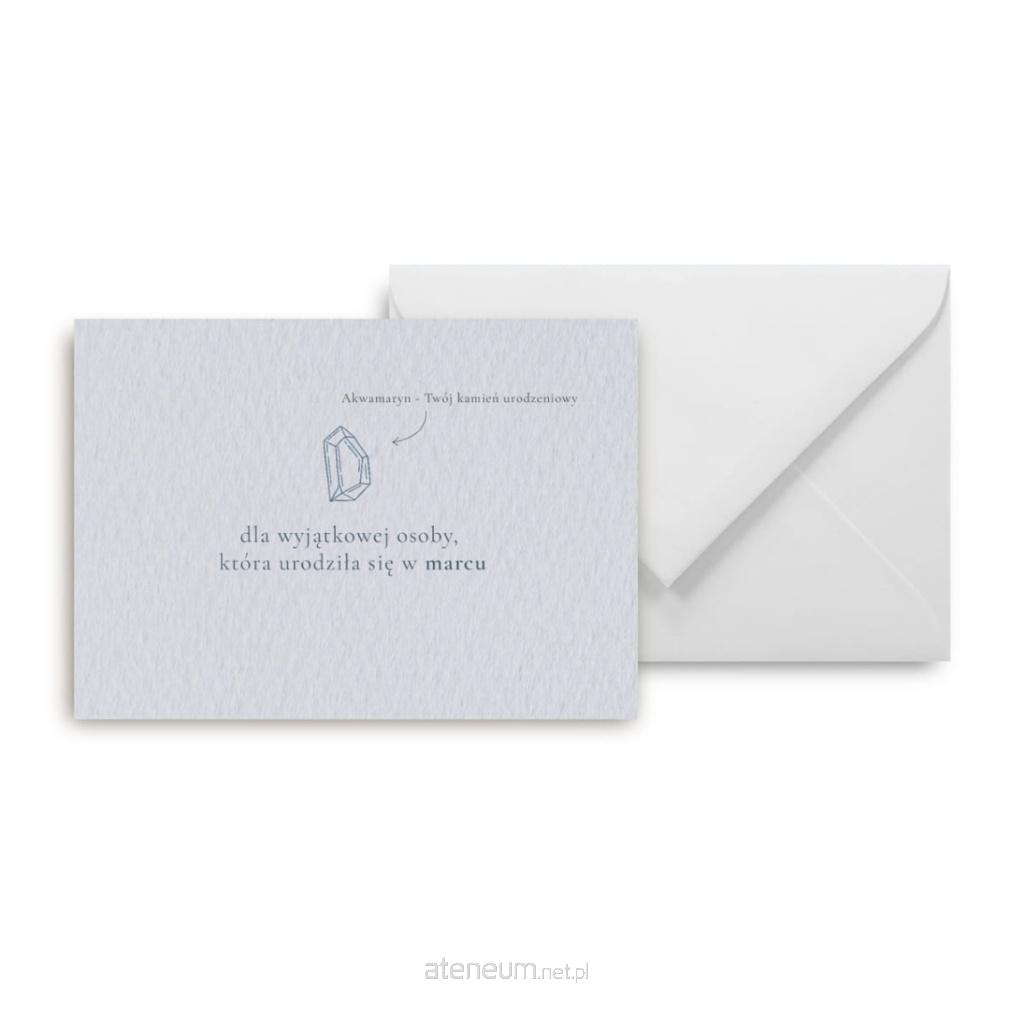 Kartka urodzinowa z akcentem akwamarynu kamienia marca, symbolu odwagi i szczerości. Idealna,