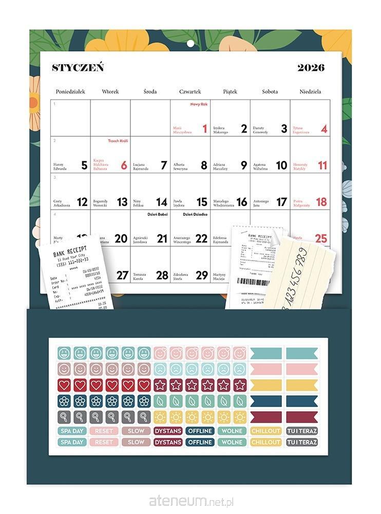 Kalendarz 2026 ścienny z kieszonką 22x31cm Green