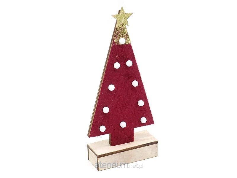 dekoracja drewniana, choinka z podstawką, ze światłem LED, 27x12cm