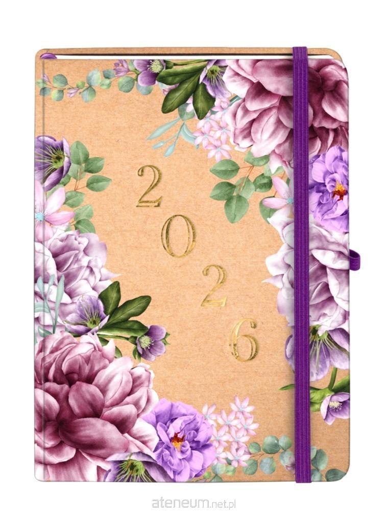 Kolekcja: Kraft, format: A5, wymiary okładki: 144x211 mm, układ: tydzień na stronie, ilość stron: 144,oprawa: twarda, materiał: papier, gramatura papieru: 80g, kolor papieru: chamoise ,dodatki: plan roku 2026, ważne wydarzenia, skorowidz adresowy, notatki, pionowa gumka zamykająca, wstążka, gumka na długopis: tak, zaokrąglone rogi: tak, wyklejka: chamoise, koperta: tak