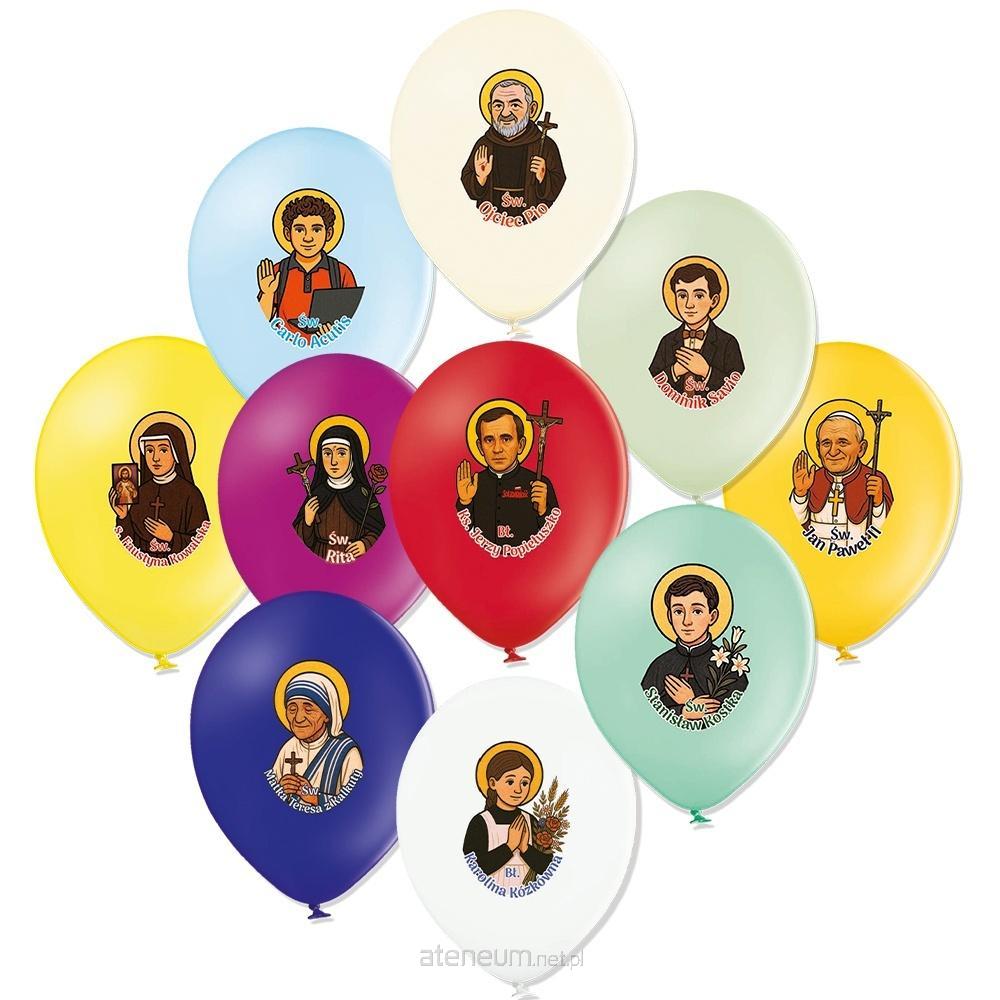 Zestaw kolorowych balonów z wizerunkami wybranych świętych