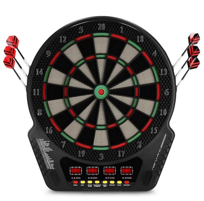 Tarcza elektroniczna do darta wyposażona w czytelny wyświetlacz LCD oraz sygnalizację dźwiękową. Umożliwia grę aż w 240 wariantach, dla 16 osób. W zestawie z 6 rzutkami z wymiennymi końcówkami. Wykonana z wytrzymałych materiałów, z możliwością zawieszenia na ścianie lub postawieniu na stojaku.