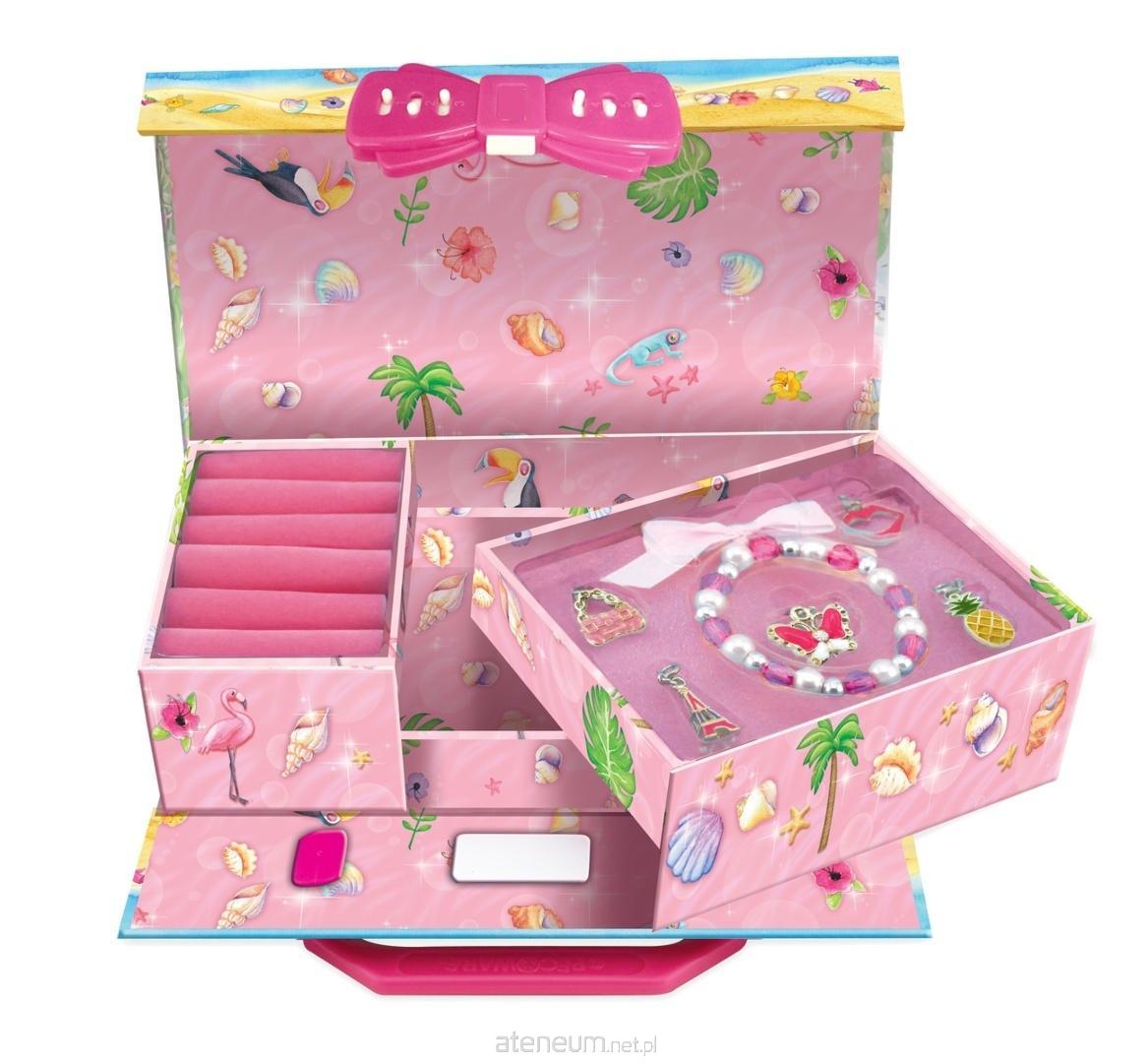 Szkatułka zamykana na zamek z szyfrem. W zestawie znajduje się bransoletka i 5 zawieszek typu 'charms' do dowolnego ozdabiania. Wiek: 6+