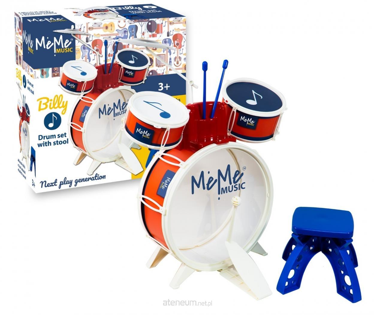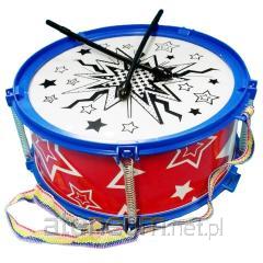 Zestaw perkusyjny z pedałem, 2 bocznymi bębnami, metalowymi cymbałkami, 2 pałeczkami oraz stoliczkiem w zestawie. Instrument wydaje realistyczny dźwięk.