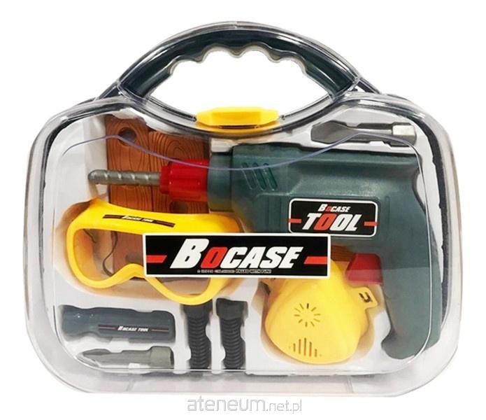 Zestaw narzędzi w walizce dla małych majsterkowiczów. W zestawie m.in. wkrętarka, okulary ochronne, maska i inne akcesoria do zabawy w majsterkowicza. Zabawka przeznaczona dla dzieci od lat 3. Podane wymiary są wymiarami walizki.