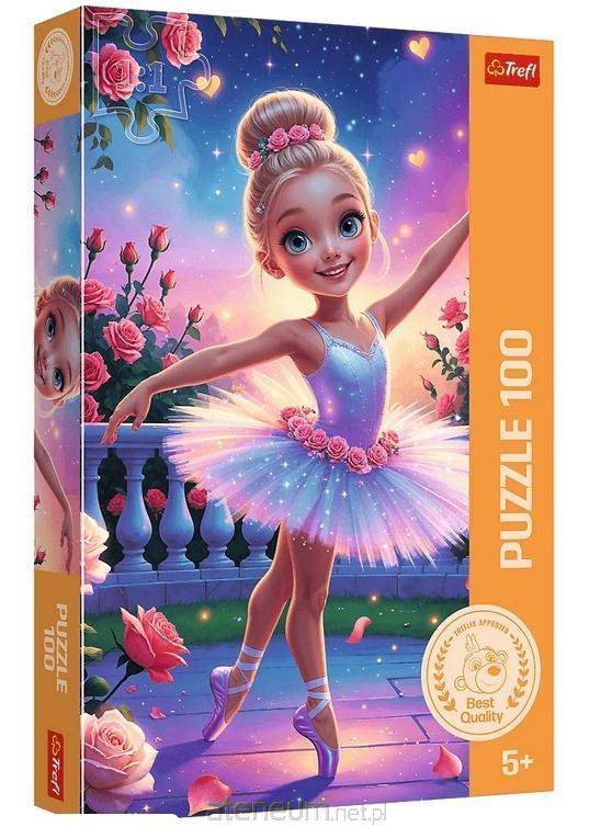 Baletnica to puzzle składające się ze 100 elementów, zaprojektowane z myślą o małych fanach baletu. Po ułożeniu układanki powstanie obrazek o wymiarach 410x275 mm, przedstawiający tańczącą baletnicę pośród róż.