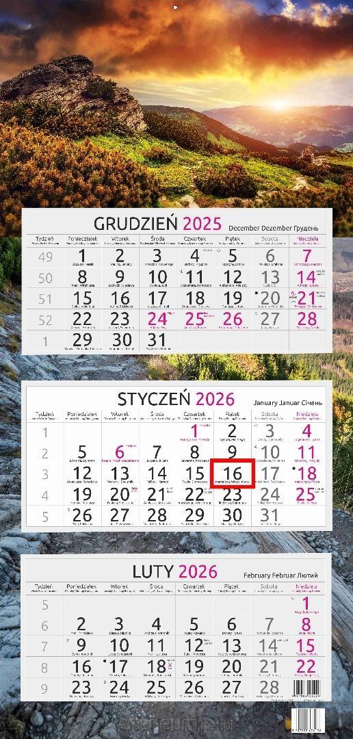 Kalendarz 2026 trójdzielny Wschód na Babiej