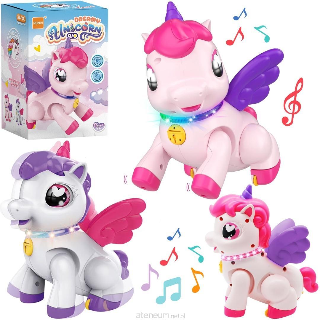 "DREAMY UNICORN" to idealny towarzysz, który wprowadzi magiczny świat fantazji do pokoju dziecka. Naciśnij przycisk, a jednorożec zacznie maszerować, grać i świecić, zachęcając do odgrywania ról i tworzenia baśniowych historii. Jest to wspaniały prezent dla każdego małego miłośnika magicznych stworzeń.