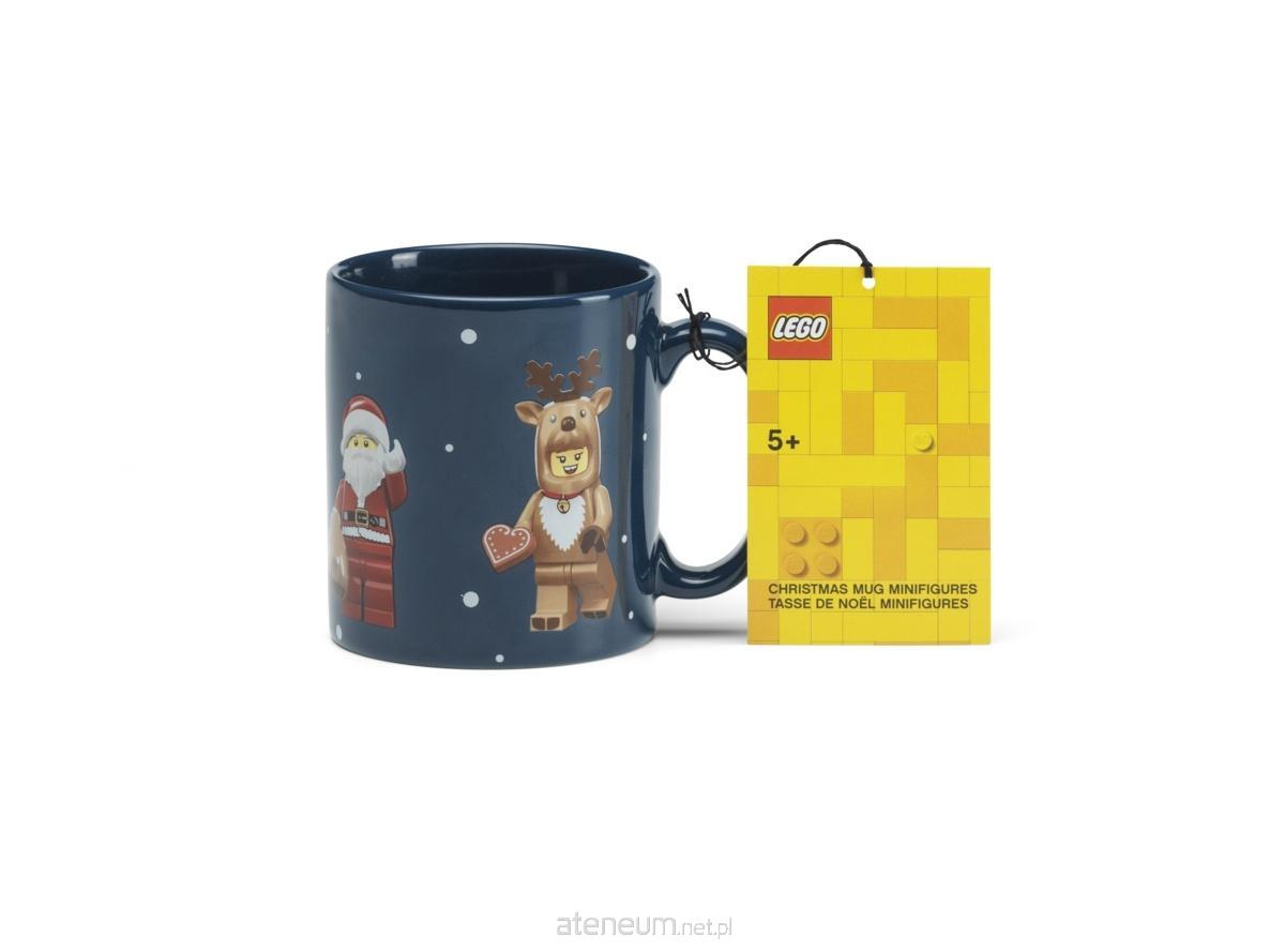 Kubek ceramiczny LEGO® ze motywem świątecznych minifigurek granatowy o pojemności 400 ml.
