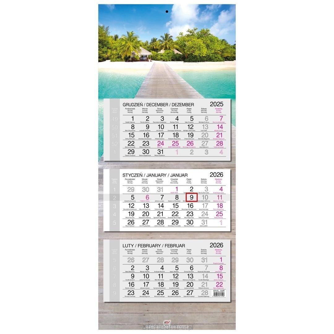 * kalendarz ścienny, trójdzielny z główką płaską z zadrukiem na całych pleckach
