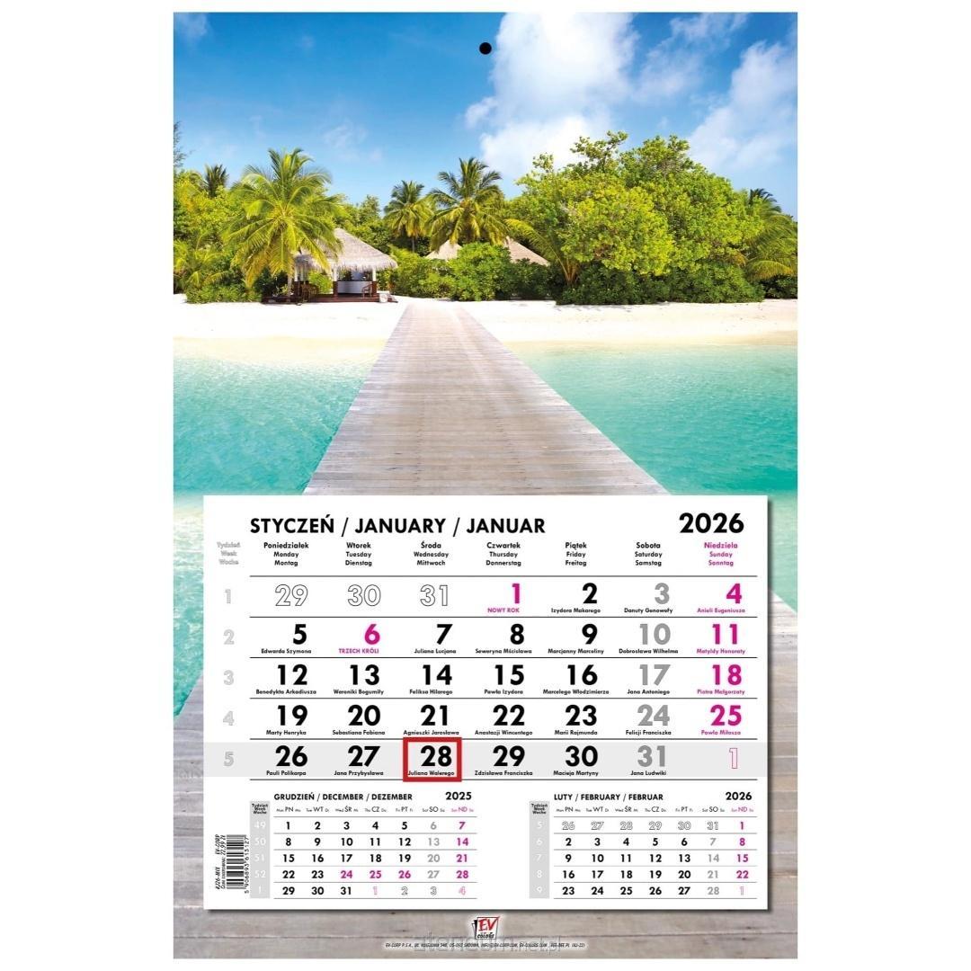 * kalendarz ścienny, jednodzielny z główką płaską z zadrukiem na całych pleckach
