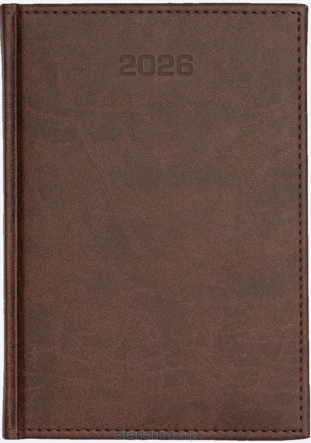 205 X 290 mm, PL, EN, DE, RUS, FR, imieniny i święta, fazy księżyca, wschody i zachody słońca, na dole kalendarium plan całego roku. Blok kalendarza szyty oraz dodatkowo klejony, wzmocniony krepą, tasiemka oraz kapitałka w kolorze kremowym, perforacja narożników druk szaro-bordowy360 stron + 8 stron map chamois 80g/m21 dzień na 1 stronie, sobota i niedziela na 1 stronie, przed każdym miesiącem terminarz miesięczny skrócone kalendarium rok 2025, 2026, 2027, plan urlopowy, plan miesięczny na 2026, jednostki miar, odległości między miastami, telefoniczne numery kierunkowe, kalendarz stuletni, informacje o Państwach członkowskich UE, oświadczenie o zdarzeniu drogowym, skorowidz teleadresowyna wyklejce z przodu mapa Europy, na wyklejce z tyłu mapa Polski