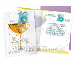 Kartka jest bogato i różnorodnie zdobiona (zależnie od wzoru: metaliczna folia, lakier perłowy,