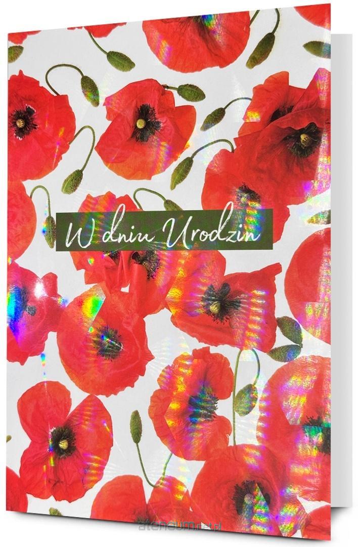 Kartka jest zdobiona opalizującą folią holograficzną, zawiera życzenia oraz kolorowy środek. W zestawie znajduje się koperta, kolorystycznie uzupełniająca się z kartką. Format złożonej kartki: B6