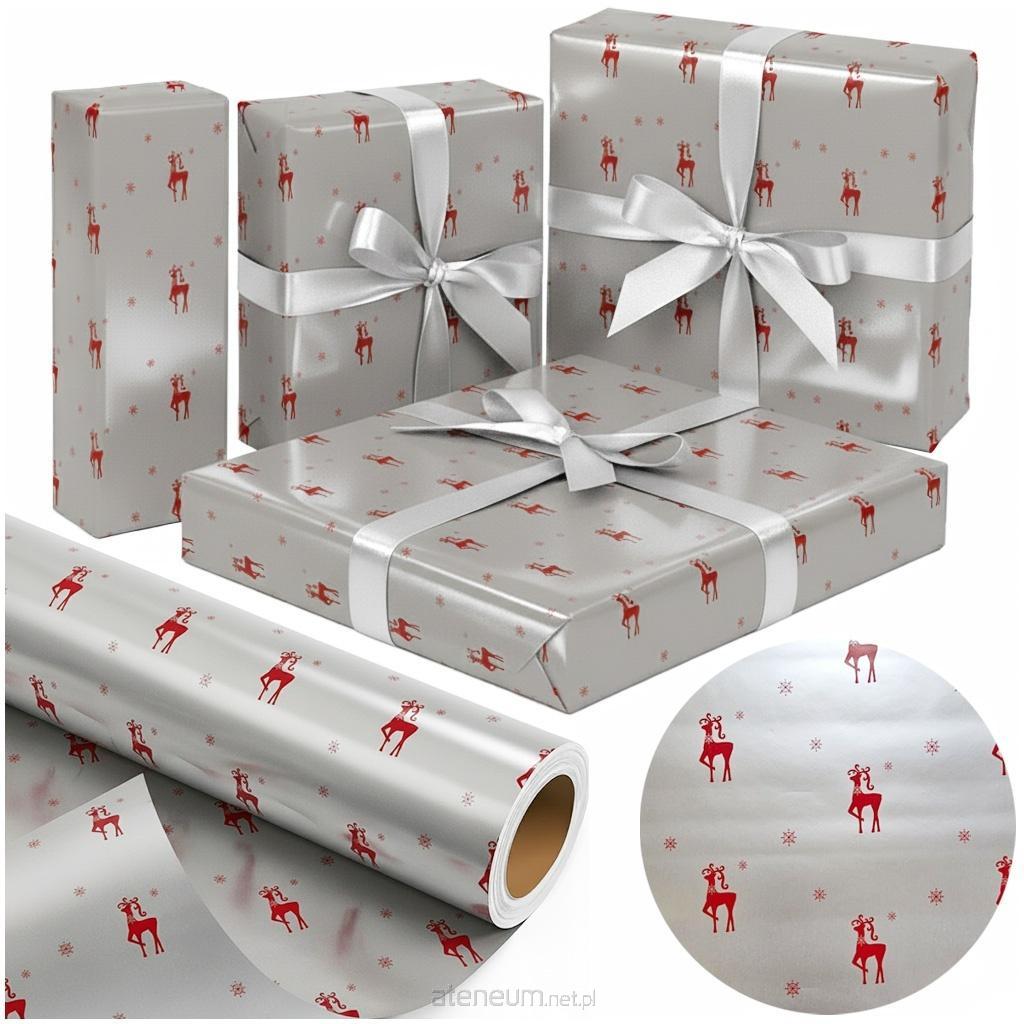 Jasne, srebrne tło i czerwone renifery tworzą elegancką, a zarazem radosną kompozycję, która pięknie prezentuje się pod choinką. Idealny do pakowania świątecznych prezentów, dekoracji, kartek i kreatywnych projektów DIY.