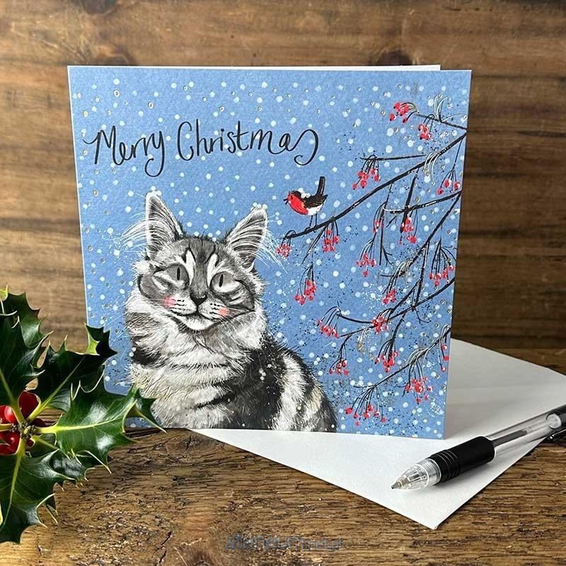 Karnet Święta kwadrat Kot w czapce i szaliku